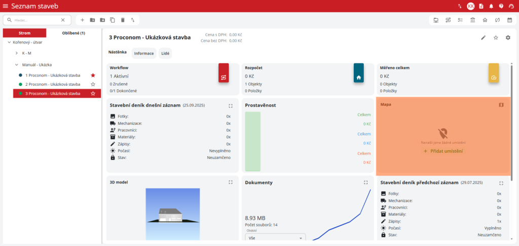 V okně Seznam staveb na kartě „Nástěnka“ uživatel vyhledá kartu „Mapa“. Kliknutím na tlačítko „Přidat umístění“ nebo skrze ikonu mapy