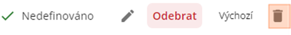 Smazání uživatel provede označením konkrétní hodnoty a stisknutí ikony koše vpravo od nadpisu Možnosti. Navrácení změn uživatel provede ikonou šipky vedle ikony popelnice