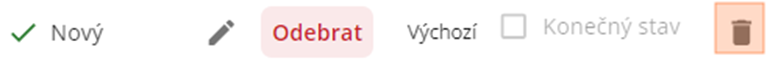 . V nově zobrazeném dialogovém okně uživatel musí v seznamu najít stav, který chce zcela smazat. Po nalezení uživatel musí kliknout na ikonu popelnice v daném řádku.