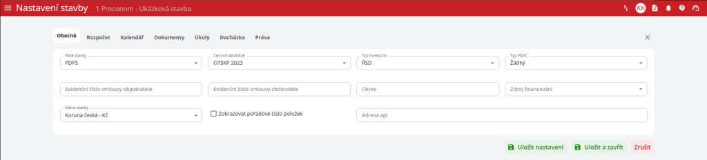 V tomto poli uživatel může vybrat cenovou databázi, která bude spojena se stavbou.