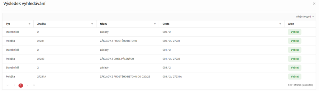 Díky vyhledávácímu poli v levé horní části obrazovky, má uživatel možnosti procházení a pohledu na strukturu rozpočtu ve formě seznamu. Je nutné zadat hledaný výraz, zmáčknout klávesu Enter. Nyní se zobrazí a otevřou všechny nalezené výsledky v novém okně pod sebou.