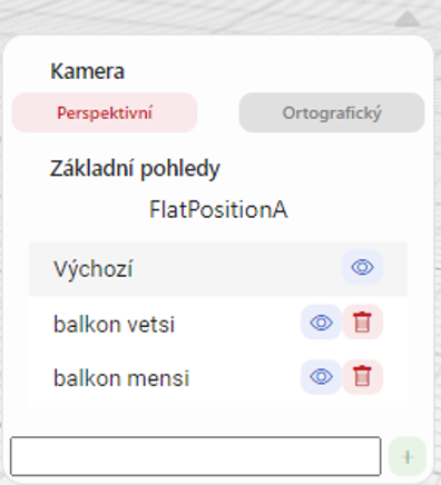 V neposlední řadě uživatel může uložit pozici kamery pro další nahlížení. Po nastavení do dané pozice uživatel musí kliknout na ikonu šipky